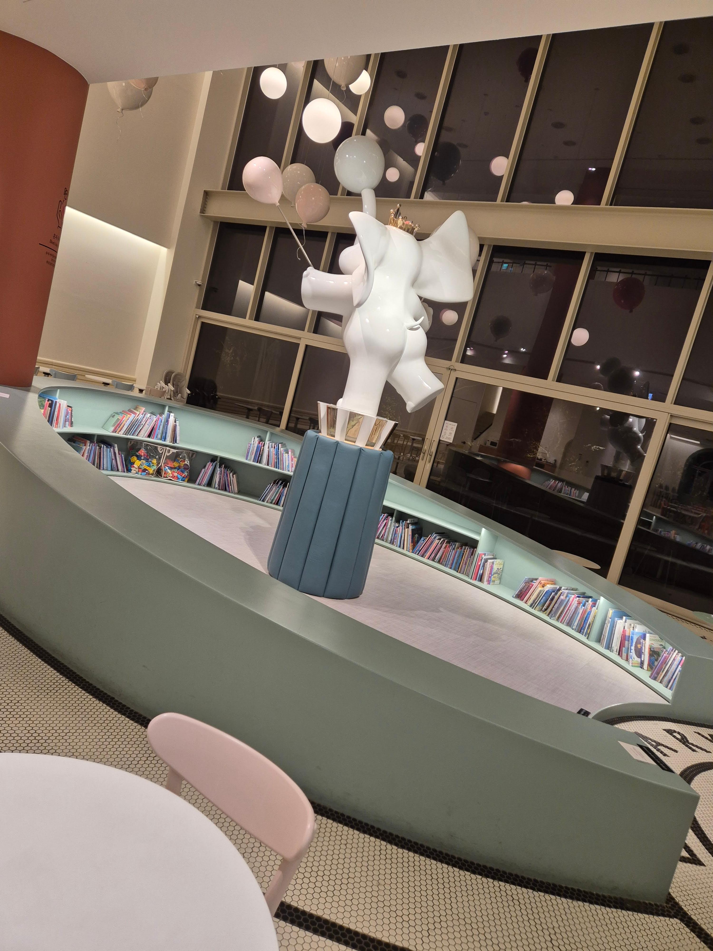 중앙에 동그랗게 책이 있는 공간이 있어서 아이들이 책 읽으며 놀 수 있답니다.