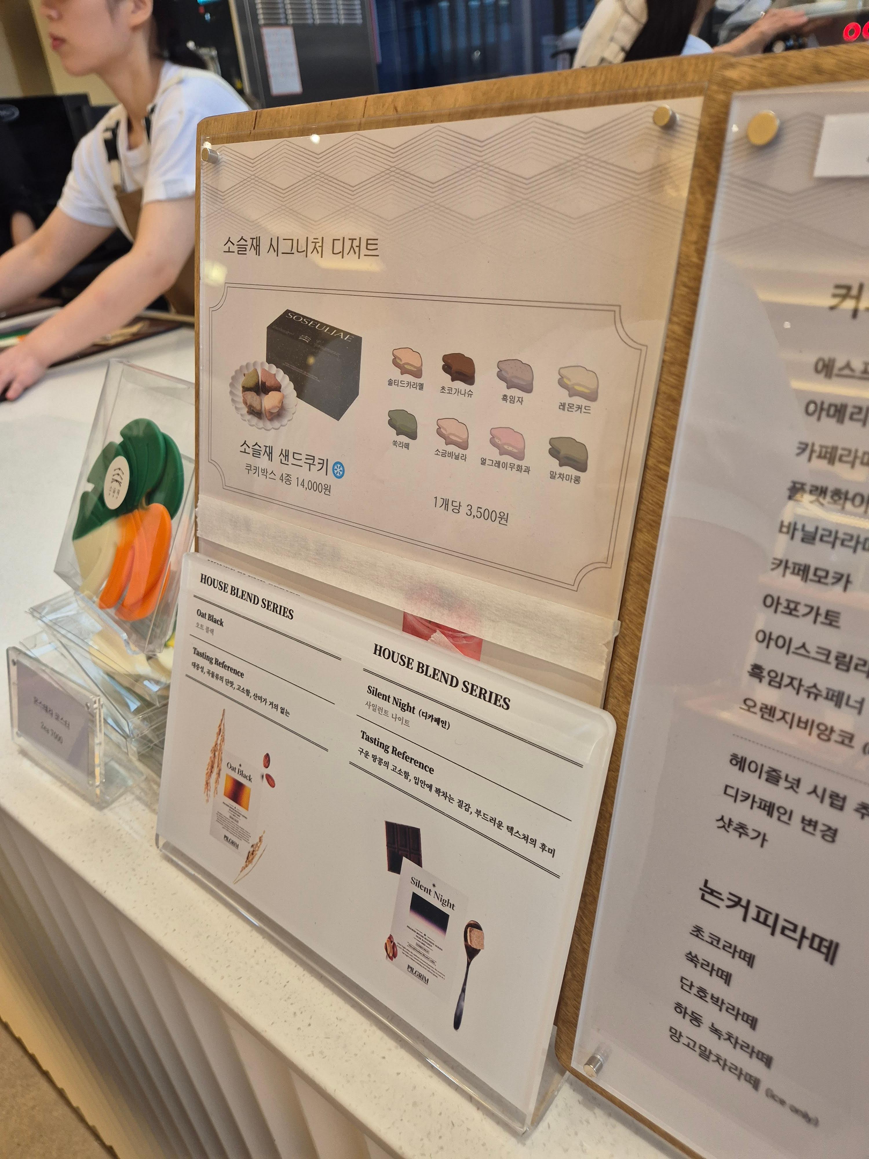 카페 소슬재 메뉴판입니다.